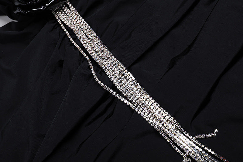 Esclusività e prestigio si fondono in un capo unico come l’abito nero con maniche lunghe e nappe decorate a fiori cavi, pensato per chi desidera distinguersi con stile e raffinatezza in ogni occasione. Questo abito rappresenta la scelta perfetta per chi ama unire eleganza senza tempo a dettagli raffinati e originali.