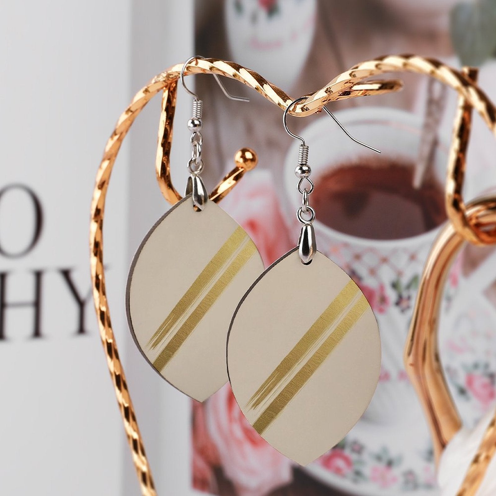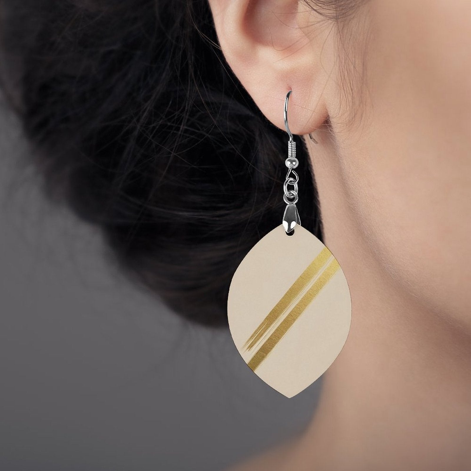Realizzati con legno di alta qualità, questi orecchini sono leggeri e piacevoli da indossare. La superficie liscia e la doppia stampa laser garantiscono un aspetto elegante e duraturo, mentre la finitura in rame placcato bianco aggiunge un tocco di luminosità sofisticata.