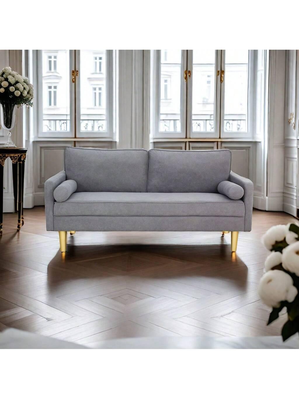 Divano in lino con 2 cuscini, moderno ed elegante
